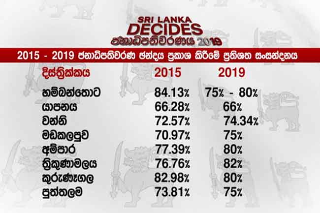 එමෙන්ම අම්පාර දිස්ත්රිකයේ ඡන්දය ප්රකාශ කිරීමේ 2015 වසරේදී සියයට 77.39ක් වන අතර එය මෙවර සියයට 80ක් දක්වා වැඩිවීමක් පෙන්නුම් කරයි.