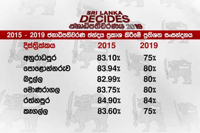 2015 ජනාධිපතිවරණයට සාපේක්ෂව 2019 ජනාධිපතිවරණයේ දී දිස්ත්රික්ක 22යෙන් ඇතැම් දිස්ත්රිකයන්වල ඡන්දය ප්රකාශ කිරීමේ අඩුවීමක් දක්නට ලැබේ.