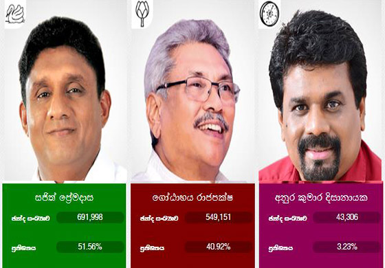 ශ්රී ලංකා පොදුජන පෙරමුණේ ජනාධිපති ධුර අපේක්ෂක ගෝඨාභය රාජපක්ෂ ඡන්ද 549,151 ක් ලබාගෙන සිටියි. එහි ප්රතිශතය 40.92% ක්.