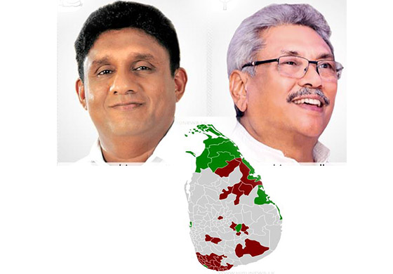 උතුර හා නැගෙනහිර ළාත්වලදී ගෝඨාභය රාජපක්ෂ මහතා දැඩි පසුබෑමක් පෙන්නුම් කළ ද දකුණේ අති බහුතර ආසන ප්රමාණයක් රාජපක්ෂ මහතා වැඩි ඡන්ද ප්රතිශතයකින් ජයග්රහණය කර තිබේ.