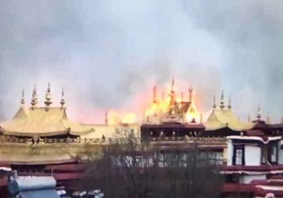 ටිබෙට් බුදුදහමේ අතිශය වැදගත් පූජනීය ස්ථානයක් ලෙස සැලකෙන ලාසා නගරයේ පිහිටි The Jokhang ආශ්රමය හදිසියේ ගිනිගෙන ඇත. වීඩියෝ පටවලින් ආශ්රමයේ වහලය දක්වා ගිනි ජාලා ඇදෙන ආකාරය පෙනෙන අතර අවම වශයෙන් එම ආශ්රමයේ එක් චෛත්යක් හෝ විනාශ වී ඇති සෙයක් පෙනෙන බව විදෙස් මාධ්ය සඳහන් කරයි.