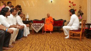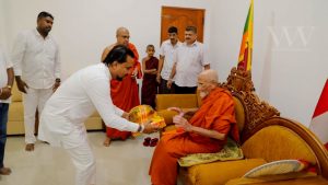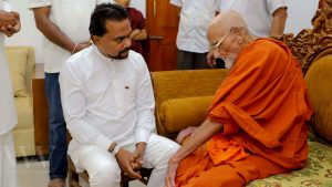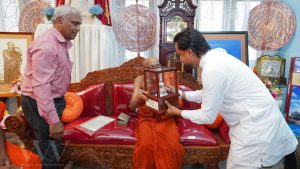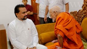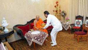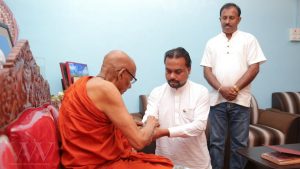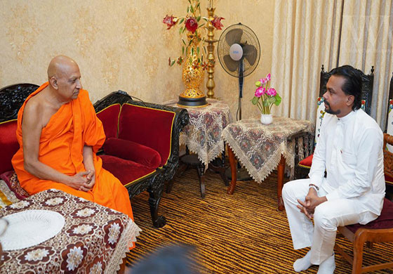 අද (02) මහනුවර දී ශ්රී දළදා සමිඳුන්ගේ ආශිර්වාදය ලබා ගැනීමෙන් අනතුරුව මල්වතු පාර්ශ්වයේ මහා නායක අතිපූජ්ය තිබ්බටුවාවේ ශ්රී සිද්ධාර්ථ සුමංගල මහනාහිමි, අස්ගිරි පාර්ශ්වයේ මහ නායක අතිපූජ්ය වරකාගොඩ ශ්රී ඥානරතන මහනාහිමි, ශ්රී ලංකා රාමඤ්ඤ මහා නිකායේ මහා නායක අතිපූජ්ය නාපාන පේමසිරි මහනාහිමි, ගැටඹේ රාජෝපවනාරාම විහාරාධිපති අතිපූජ්ය කැප්පෙටියාගොඩ සිරිවිමල හිමි බැහැදැකීමෙන් අනතුරුව ගරු අමාත්ය විමල් විරවංශ මැතිතුමා උන් වහන්සේලාගේද ආශිර්වාදය ලබා ගත්තේය.