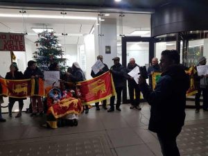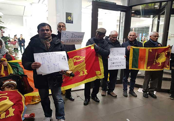 දෙසැම්බර් 12 වැනිදාට යෙදී තිබෙන බ්රිතාන්ය පාර්ලිමේන්තු මැතිවරණයට සමගාමීව විපක්ෂයේ කම්කරු පක්ෂ ඡායා කැබිනට්ටුවේ මුදල් අමාත්ය ජෝන් මැක්ඩොනල්ඩ් විසින් සිදුකරන ලද ශ්රී ලංකා විරෝධී අසත්ය ප්රකාශයට එරෙහිව ලන්ඩනයේ ශ්රී ලාංකිකයෝ පෙරේදා (04දා) සවස විරෝධතාවක නිරත වූහ.