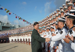 (චීන ජනාධිපති ක්ෂී ජින්පින් පසුගියදා සන්යා නාවික තොටුපලේදී නාවික් සෙබලුන් සහ නාවික යාත්රා නිපදවන්නන් හමුවූ අවස්ථාව)
