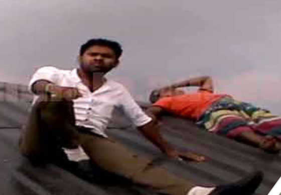 ඒ හිගුරක්ගොඩ තෙමහල් පොදු වෙළද සංකීර්ණයේ වහලය මත සිටයි.