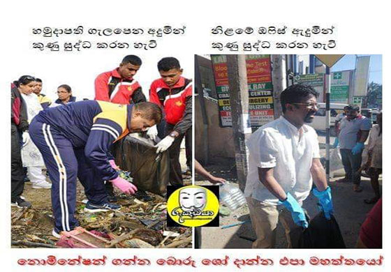 බලන්න මිත්රවරුනි එතුමා කරන කැප කිරිම නොමිනේෂන් ගන්න…තමන්ම ඕර්ගනයිස් කරපු ටවුම සුද්ද කිරිල්ලට ඔෆිස් ඇඳුමෙන්…ඇත්තටම හිතලා බලන්න මනුස්සයෙක් හදවතින් දෙයක් කරනවනම් ඒ කරන වැඩේට අනුගත වෙනවා නේද?මෙතැන මොකක්ද වෙන්නෙ…හිතල බලන්න…