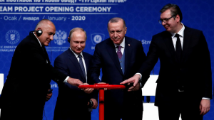 (රුසියානු ජනාධිපති ව්ලැදීමීර් පුටින් , තුර්කි ජනාධිපති තායිප් එර්දොගාන් සර්බියානු ජනාධිපති ඇලෙක්සැන්ඩර් වුව්සිස් සහ බල්ගේරියානු අගමැති බොරිස්සොවල්සො ටර්ක් ස්ට්රීම් ව්යාපෘතිය නිල වශයෙන් විවෘත කරන අවස්තාව.)