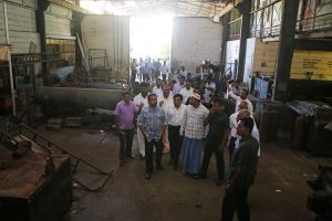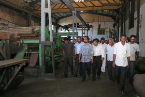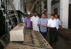 අක්කර 500කට ආසන්න භූමි භාගයක් පුරා පැතිරී ඇති කර්මාන්ත පරිශ්රයේ වසාදමා ඇති පරිපාලන ගොඩනැගිල්ල, යන්ත්රාගාරය, බොයිලේරු අංශය, වැඩ බිම් අංශය ආදී සියල්ල නිරීක්ෂණය කළ ඇමතිවරයා හිටපු සේවක පිරිස්, ක්ෂේත්රයේ විද්වතුන් ඇතුළු පිරිසක් සමග මෙම ජාතික සම්පත යළි නගාසිටුවීම පිළිබඳව සාකච්ජාවක ද නිරත විය. මෙම නිල නිරීක්ෂණ චාරිකාවට අමාත්යාංශ ලේකම් ජේ.ඒ රංජිත් මහතා ඇතුළු අමාත්යාංශයේ නිලධාරීහු ද එක්ව සිටියහ.