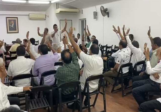 එහිදී පක්ෂ නායකත්වය සම්බන්ධයෙන් ඡන්ද විමසීමක් කළ යුතු බවට මන්ත්රීවරුන් අතරින් දැඩි බලපෑමක් එල්ල වූ අවස්ථාවේදී පක්ෂ නායක රනිල් වික්රමසිංහ ඊට විරෝධය පළකරමින් රැස්වීමෙන් පිටවගොස් ඇති අතර නැවතත් ඔහුව සාකච්ජාවට එක්කර ගැනීමට මලික් සමරවික්රම හා කබීර් හෂීම් ඔහු සමග වෙනම සාකච්ජා පැවැත්වුවද එයද අසාර්ථක වී ඇත.