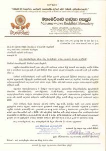 ජනාධිපති ගෝඨාභය රාජපක්ෂ මහතාට බාරදුන් ලිපියක මේ බව සඳහන් වන අතර එම ලිපිය පහතින් දක්වා ඇත.