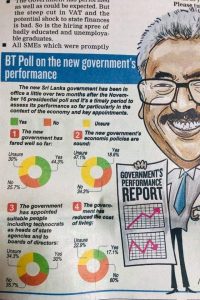 ආණ්ඩුව පත්වී මාස දෙකක කාලය තුල ජනතාවගේ කැමැත්ත විශාල වශයෙන් පහත බැස ඇති බව බිස්නස් ටයිම්ස් විසින් කළ සමීක්ෂණයකින් හෙළි කර ඇත.