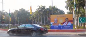 න්දියාවේ සංචාරයක යෙදෙන අග්රාමාත්ය මහින්ද රාජපක්ෂ මහතා වෙනුවෙන් ඉන්දියාවේ ප්රධාන මාර්ග කිහිපයක පිලිගැනීමේ නාම පුවරු සවිකොට තිබෙනවා.