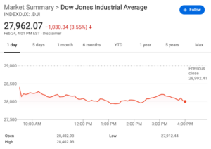 පසුගිය සති අන්තය පුරා ලෝකයේ රටවල් කොරෝනා වෛරසයෙන් බේරී සිටීමට පියවර ගනිමින් සිටින බව අවබෝධ කරගත් කොටස් වෙළෙඳපොළ ආයෝජකයෝ ආරක්ෂාකාරී ආයෝජන පියවර අනුගමනය කිරීම මීට හේතුවී ඇති බව පැවසේ. අමෙරිකානු කොටස් වෙළෙඳපොළේ සංචාරක ක්ෂේත්රයේ කොටස් ආශ්රිතව මෙන්ම තාක්ෂණ ක්ෂේත්රයේ කොටස් ආශ්රිතවද මෙම තත්වය බලපැවැත්වී ඇති බව ආර්ථික විශ්ලේෂකයෝ පවසති. සමාගම් අතුරින් ඇපල් සමාගම,ෆේස්බුක් සමාගම,මයික්රෝසොෆ්ට් සමාගම,ඇමසෝන් සමාගම සහ ඇල්ෆබට් සමාගම යන සමාගම් පමණක් අමෙරිකානු කොටස් වෙළෙඳ පොළේ ඩොලර් බිලියන 250ක අලාභයක් වාර්තා කර ඇති බව ආර්ථික විශ්ලේෂකයෝ පෙන්වා දෙති.ගුවන් සාමාගම් අතුරින් ඩෙල්ටා ගුවන් සමාගම සහ ඇමෙරිකන් ගුවන් සමාගම පමණක් 7%ක අවවර්ධනයක් අමෙරිකානු කොටස් වෙළෙඳ පොළ තුළ ප්රදර්ශනය කළේය.