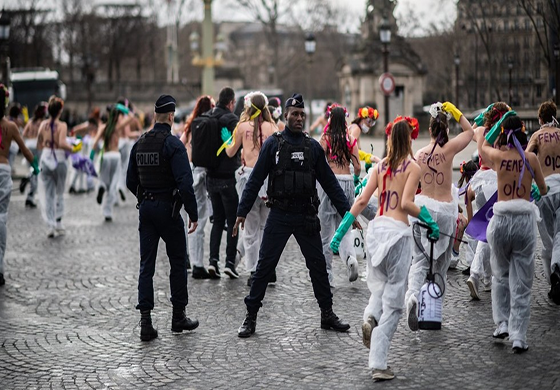 බටහිර රටවලදී කාන්තාවෝ වීදි බැස සිටියේ පීතෘ මූලිකත්වය අවසන් කරන ලෙස ඉල්ලා වන අතර ප්රංශයේ ස්ත්රීවාදීහු දෙවන ලෝක යුද්දයේ ස්ත්රී සංකේතය පැළඳි ඇඳුම් භාවිතා කළහ.ප්රංශ සහ බ්රිතාන්යය කාන්තාවෝ දේශගුණික විපර්යාස නවතාලීමට බලකරන සටන් පාඨ තම විරෝධතා සටන් පාඨ අතරට එක් කරගැනීමට කටයුතු කිර තිබූ අතර ඔවුන්ගේ උඩුකය නිරාවරණය කරගත් වීඩියෝ දර්ශන ලොව පුරා මාධ්යය වල ආකර්ශනය දිනා ගත්හ.