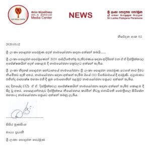 නිවේදනයක් නිකුත් කරමින් ඔවුන් පෙන්වා දෙන්නේ අපේක්ෂකයකු වශයෙන් සිරිසේන මහතා ඊට අස්සන් තබා ඇති බවකි.