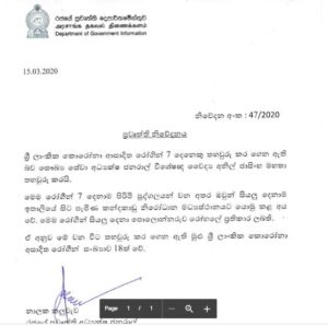 ශ්රී ලාංකික කොරෝනා ආසාදිත තවත් රෝගීන් හත් දෙනෙකු තහවුරු කරගෙන ඇති බව සෞඛ්ය සේවා අධ්යක්ෂ ජනරාල් විශේෂඥ වෛද්ය අනිල් ජාසිංහ මහතා පැවසීය.