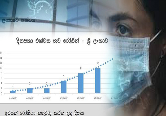 කොරෝනා වයිරසය (කොවිඩ්-19) ශරීරගත වී ඇත්දැයි සැක සහිත පුද්ගලයින් 204 දෙනකු මේ වන විට ශ්රී ලංකාව පුරා රෝහල් 17 ක් වෛද්ය අධීක්ණය යටතේ සිටින බවට සෞඛ්ය සහ දේශිය වෛද්ය සේවා අමාත්යංශයේ වසංගත රෝග විද්යා අංශය කියයි.