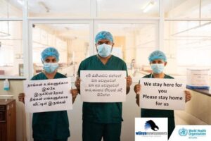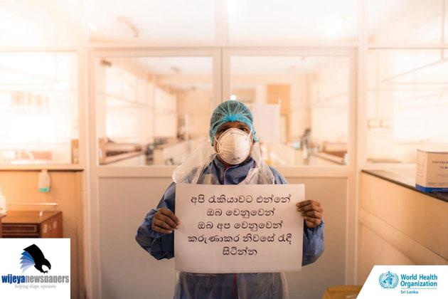‘‘අපි රැකියාවට එන්නේ ඔබ වෙනුවෙන් ඔබ අප වෙනුවෙන් කරුණාකර නිවසේ රැඳී සිටින්න‘‘ කියන වෛද්යවරු මේ වනවිට දිවා රෑ වෙහෙසෙමින් තම බිරිඳ දරුවන් ගේ දොර මෙන්ම අනෙකුත් ආදරණීයන්ද පසෙක තබා කෝවිඩ් 19 වයිරසයෙන් ශ්රී ලංකාව බේරා ගැනීමේ ජාතික කර්තව්යයට උර දී සිටිති.