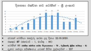 වසංගත රෝග විද්යා අංශය විසින් නිකුත් කරන ලද ඊයේ දිනට අදාල වාර්තාවට අනුව ඊයේ දිනයේදී COVID-19 වෛරසය ආසාදිතයන් 9 දෙනෙකු අළුතින් හමුවූ බව පැවසේ. එය පෙර දිනට වඩා රෝගීන් තිදෙනෙකුගේ වැඩිවීමකි.