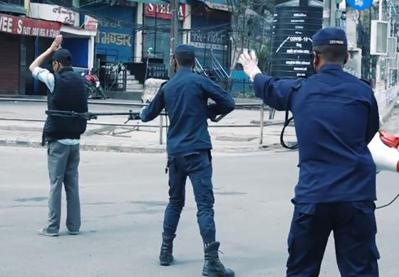 එසේ ඇඳිරි නීතිය කඩන්නවුන් අත් අඩංගුවට ගැනීමට නේපාලය නේපාලයටම ආවේනික වූ ක්රමයක් භාවිත කරයි.සමාජ දුරස්තීකරණය අත් අඩංගුවට ගන්නා පුද්ගලයාගෙන් පවා ආරක්ෂා කිරීමට නේපාල පොලීසිය ගන්නා උත්සාහය ප්රසංශනීයයි.