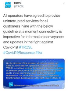 ඒ පිළිබඳව TRCSL විසින් ට්විටර් පණිවිඩයක් නිකුත් කරමින් දැනුම් දී තිබේ.