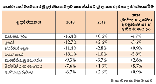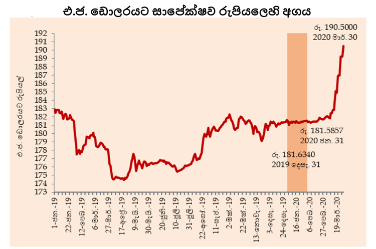 ඒ අනුව 2020 වසරේ මාර්තු 30 දින වන විට රුපියල, එක්සත් ජනපද ඩොලරයට එරෙහිව සියයට 4.7කින් අවප්රමාණය විය.