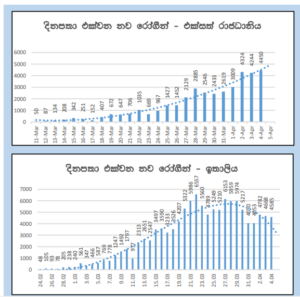 වසංගත රෝග විද්යා අංශය ඊයේ(04 ) දිනයට අදාලව අද දිනයේ(05) උදෑසන 10:00ට නිකුත් කළ වාර්තාවට අනුව අප්රේල් 04 වනදා ශ්රී ලංකාවෙන් වාර්තා වූ COVID-19 වෛරසය ආසාදිතයින් 07 දෙනෙකි. මෙය අප්රේල් 03 දිනට වාර්තා වූ ආසාදිතයින් ගනනට වඩා එක් අයෙකුගේ අඩුවීමකි. මේ වනවිට ආසාදිතයන් පස් දෙනෙකු ශ්රී ලංකාව තුළ මිය ගොස් ඇත.