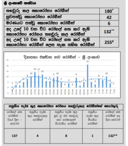 අප්රේල් 06වනදා වන විට සමස්ත ශ්රී ලංකාව තුළ COVID-19 වෛරසය ආසාදිතයින් 180 දෙනෙකු වාර්තා වී ඇත. දැනට වැඩිම ආසාදිතයින් සංඛ්යාවක් වාර්තා වූ කොළඹ දිස්ත්රික්කය තුළ ආසාදිතයින් 44 දෙනෙකු අප්රේල් 06 වනදා වන විට වාර්තා වී තිබේ. දෙවෙනි වැඩිම ආසාදිතයින් සංඛ්යාවක් වාර්තා වන්නේ පුත්තලම දිස්ත්රික්කයෙනි. සංඛ්යාත්මකව එම අගය 31කි.කළුතර සහ ගම්පහ දිස්ත්රික්ක වලින් 26 සහ 13 බැගින් ආසාදිතයින් වාර්තා වී තිබේ.