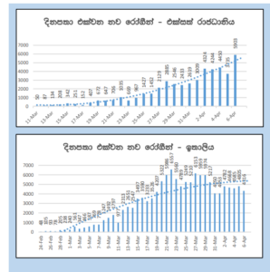 වසංගත රෝග විද්යා අංශය ඊයේ(06 ) දිනයට අදාලව අද දිනයේ(7) උදෑසන 10:00ට නිකුත් කළ වාර්තාවට අනුව අප්රේල් 06 වනදා ශ්රී ලංකාවෙන් වාර්තා වූ COVID-19 වෛරසය ආසාදිතයින් 04 දෙනෙකි. මෙය අප්රේල් 05 දිනට වාර්තා වූ ආසාදිතයින් ගනනට වඩා හතර දෙනෙකුගෙ අඩුවීමකි. මේ වනවිට ආසාදිතයන් හය දෙනෙකු ශ්රී ලංකාව තුළ මිය ගොස් ඇත. ඊයේ දිනයේදී වෛරසය ආසාදනය හේතුවෙන් එක් මරණයක් වාර්තා වූයේය. නැත.තවද ඊයේ දිනය වන විට ආසාදිතයින් 42 ක් සුවපත් වී රෝහල් වලින් පිටත්ව ගොස් ඇත.