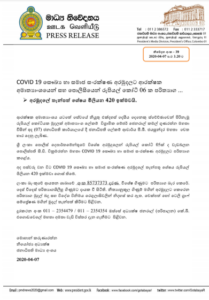 අද පස්වරු වන විට COVID 19 සෞඛ්ය හා සමාජ සංරක්ෂණ අරමුදලේ තැන්පතු ශේෂය රුපියල් මිලියන 420 ඉක්මවා ගොස් තිබේ.