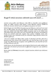 අත්යාවශ්ය ආහාර සැපයීම, සහල් නිෂ්පාදනය, ගබඩා කිරීම හා බෙදාහැරීම, ආහාර සුරක්ෂිතතාව තහවුරු කර ගැනීමට අත්යාවශ්ය බැවින් සියලුම වී මෝල් හිමියන්ගේ සේවාවන් COVID 19 නිරෝධායන අත්යාවශ්ය සේවාවන් ලෙස නැවත දැනුම්දෙන තුරු ප්රකාශයට පත් කර තිබේ.