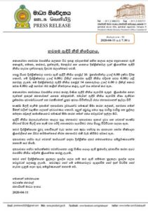 අදාළ දිස්ත්රික්කවල ඇඳිරි නිතිය අප්රේල් 14 අඟහරුවාදා උදෑසන 6ට ලිහිල් කරන විට සවස 4ට යළි පනවන බවට පෙර නිවේදනය කළ ද එය වෙනස් කර තිබෙනවා.