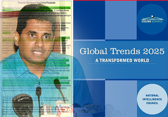 මේ වන විට Global Trends 2030 සහ Global Trends 2035 පුරෝකතනද NIC සකස් කර හමාරය. මෙවැනි පුරෝකථන සකස් කිරීම සිදුවන්නේ බුද්ධි මණ්ඩලයකින් බව පැවසුවද එහි සාමාජිකත්වය කුමක්දැයි NIC හෙළි නොකරයි. ඔවුන් පවසන ඇතැම් පුරෝකථන පවතින දැනුමකින්, සාක්ෂි, දත්ත, තොරතුරු මත ඉදිරිපත් කළ නොහැකි ඒවාය. නමුත් ඒ පුරෝකථනය ලැබුනේ කෙලෙසද යන්න ඔවුන් හෙළි නොකරයි. 2008 වසරේ සකස් කළ Global Trends 2025 පරිච්ජේද 7 කින් සමන්විතය. එහි 5 වන පරිච්ජේදය යටතේ 75 වන පිටුවේ මාතෘකාව Potential Emergence of a Global Pandemic යනුවෙනි. එනම් “ගෝලීය වසංගතයක් ඇති වීමේ විභවතාව” යනුවෙනි. එහි දැක්වෙන්නේ 2025 වසර වනවිට ඇතිවිය හැකි ගෝලීය වසංගතයක් ගැනයි. එවැන්නක් ගැන අනාවැකි පළ කිරීම අරුමයක් දැයි යමකුට සිතෙන්නට පුළුවන. එහෙත් වසර 12 කට පෙර ඉදිරිපත් කළ මේ පුරෝකතනයේ දැක්වෙන්නේ,