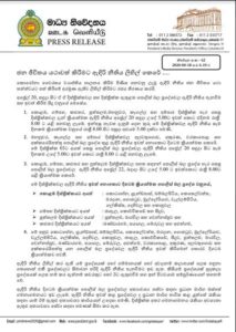 කොළඹ, ගම්පහ, කළුතර, පුත්තලම,මහනුවර, කෑගල්ල සහ අම්පාර දිස්ත්රික්ක හැර සෙසු දිස්ත්රික්කවල දැන් ක්රියාත්මක ඇඳිරි නීතිය අප්රේල් 20 සඳුදා උදේ 5.00ට ඉවත් කොට එදිනම රාත්රී 8.00 ට යළි පනවනු ලැබේ.