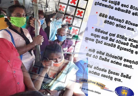 අද (20) දින ඇදිරි නීතිය ඉවත් කළ ප්රදේශ වල පොදු මගී ප්රවාහන සේවා වල මීටරයක් දුර තබා මගීන් ප්රවාහනය කිරීමක් සිදු නොවන බවට