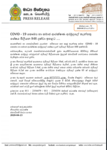කොවිඩ්- 19 සෞඛ්ය හා සමාජ ආරක්ෂණ අරමුදලේ තැන්පතු ශේෂය මේ වන විට රුපියල් මිලියන 848 දක්වා ඉහළ ගොස් තිබේ.