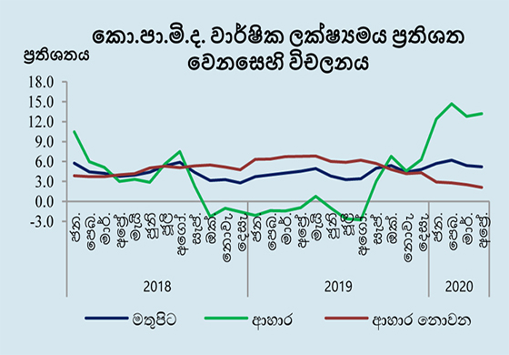 වාර්ෂික සාමාන්ය පදනම මත මනිනු ලබන කො.පා.මි. දර්ශකයෙහි වෙනස, 2020 මාර්තු මාසයේ පැවති සියයට 4.7 හි සිට 2020 අප්රේල් මාසයේ දී සියයට 4.8ක් දක්වා සුළු වශයෙන් ඉහළ යන ලදී.