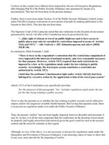 මේ අතර ඔහු නිරෝධායන නීතියට අනුවඇඳිරි නිතිය පැනවීමට හැකියාවක් නොමැති බවත් සුමන්තිරන් වැඩිදුරටත් සිය ලිපියේ වැඩි දුරටත් සඳහන් කර ඇත.