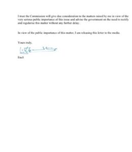 පිටපත් තුනකින් සමන්විත මෙම ලිපිය මඟින් සුමන්තිරන් පෙන්වා දීමට උත්සහාකර ඇත්තේ නීතිවිරෝධි ආකාරයෙන් රජය විසි්න් ඇඳිරිනීතිය පනවා ඇති බවයි. ඒ අනුව මෙරට ජනතාවගේ මූලික අයිතිවාසිකම් කඩවී ඇති බවත් එම ලිපිය මඟින් සුමන්තිරන් පෙන්වා දීමට උත්සහාකර තිබේ.