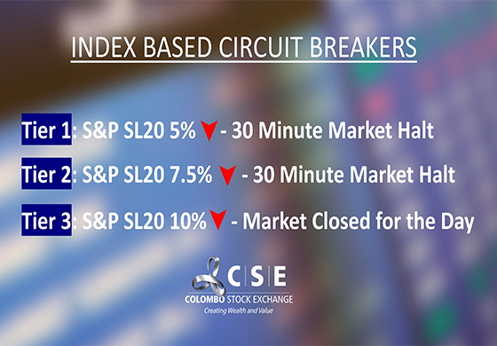 කොටස් වෙළෙඳපොළ මිල දර්ශක පහළ යන අවස්ථාවේ දී වෙළෙඳපොළ කටයුතු ස්වයංක්රීයවම අත්හිටුවීම අදියර තුනක් යටතේ ක්රියාවට නැංවීමට ශ්රී ලංකා සුරැකුම්පත් හා විනිමය කොමිෂං සභාව විසින් ක්රමවේදයක් හඳුන්වා දී තිබේ.