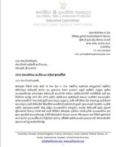 රටට එරෙහිවන සංවිධාන වලින් ඉවත්වන බවට පසුගියදා 11 වන රණවිරු සැමරුමේදී අතිගරු ජනාධිපති ගෝඨාභය රාජපක්ෂ මැතිතුමා විසින් කරන ලද ප්රකාශය මව්බිම වෙනුවෙන් හඬ නගන විදෙස්ගත ශ්රී ලාංකිකයන් ලෙස ගෝලීය ශ්රීලාංකික සංසදයේ විධායක සභාව පවසයි.