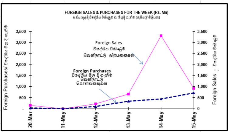 ඒ අනුව ඊයේ දින විදේශීය මිල දී ගැනීම් රු. මිලියන 300 ක් ලෙසින් සටහන් වූ අතර විදේශීව විකිණුම් වාර්තා වූයේ රු. මිලියන 180 ක් වශයෙනි. මේ අනුව ඊයේ දින ගනුදෙනු හරහා රු. මිලියන 120 ක ශුද්ධ විදේශීය ගලා ඒමක් වාර්තා වී තිබේ.