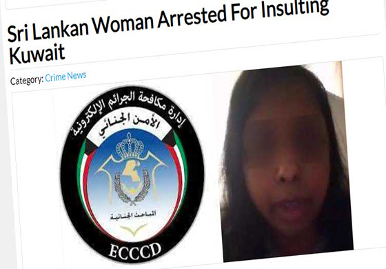 කුවේට් රාජ්යයේ පාලකයාට අපහාස කලේ යයි ශ්රී ලාංකික කාන්තාවක් එරට අත්අඩංගුවට ගෙන ඇති බවට වාර්තා පළ වේ.