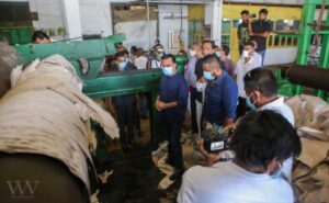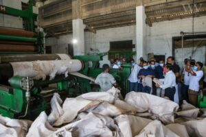 එවැනි තත්වයක් යටතේ තිබුණු මෙම කර්මාන්ත ශාලාවට ගෝඨාභය රාජපක්ෂ මැතිතුමන්ගේ සෞභාග්යයේ දැක්ම ප්රතිපත්ති ප්රකාශනය අනුව යමින් යළි පණ දිය යුතු බව අප තීරණය කරනු ලැබුවා. අපි මේ වසරේ ජනවාරි 15 වැනිදා පළමුවරට මෙම කර්මාන්ත ශාලාව නිරීක්ෂණයට පැමිණි අවස්ථාවේ ඊට යළි පණ දිය හැකි යැයි සිතෙන තත්වයක් තිබුණේ නැහැ. නමුත් අපි ජාතික කඩදාසි සමාගමට පත් කරනු ලැබූ සභාපතිවරයා වූ රූපසිංහ මහතා ඇතු`ඵ අධ්යක්ෂ මණ්ඩලයේත්, දේශීය හා විදේශීය ඉංජිනේරුවන් කිිහිප දෙනෙකුගේත්, නාවික හමුදාවේ ඉංජිනේරු බලකායේ හා යුද හමුදාවේත් සුවිශාල දායකත්වය සම`ග අද වන විට මෙම කර්මාන්ත ශාලාවේ කඩදාසි නිපදවන ප්රමාණ යන්ත්රය යළි පණ ගැන්වීමට හා එම`ගින් පරීක්ෂණ මට්ටමින් කඩදාසි නිෂ්පාදනය කිරීමටත් හැකියාව ලැබී තිබෙනවා. යන්ත්රයේ පවතින ඉතා සු`ඵ අඩුපාඩු කම් ම`ග හරවා ගනිමින් 60 – 200 ජී එස් එම් අගයන්ගෙන් යුත් වාණිජ මට්ටමේ කඩදාසි හා බෝඞ් නිෂ්පාදනය කිරීමට අපට නුදුරේම හැකියාව ලැබේවි.