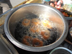 ගෙනගොස් නිවී හැනහිල්ලේ කරවල කෑල්ලක් ද බැදගනී. මග දෙපස වේගයෙන් බිහිවෙන ‘ෂෝට්ඊට්ස්’ කඩ, වඬේ බදින කරත්ත, එකම පාන්පිටි ගුලිය විවිධ හැඩයට නවා මුරුක්කු සැණකෙළි මවන බයිට් වෙළෙන්දෝ ආදී මෙකී නොකී සියල්ලෝම බහුජන ගත සුව පිණිස, වරක් බැදි තෙල් තාච්චිය ඉවතලා අලූත් තෙල් පුරවනවා යයි ඔබ සිතන්නේද? පාරේ යන්නවුන්ට පෙනෙන්නට වීදුරු පෙට්ටිවල අසුරාගෙන මේ විකුණන්නේ තෙල් බඳුන හිඳෙන තුරු ඒ තුළ කලතමින් බදින ලද අනාරක්ෂිත ආහාරයි.