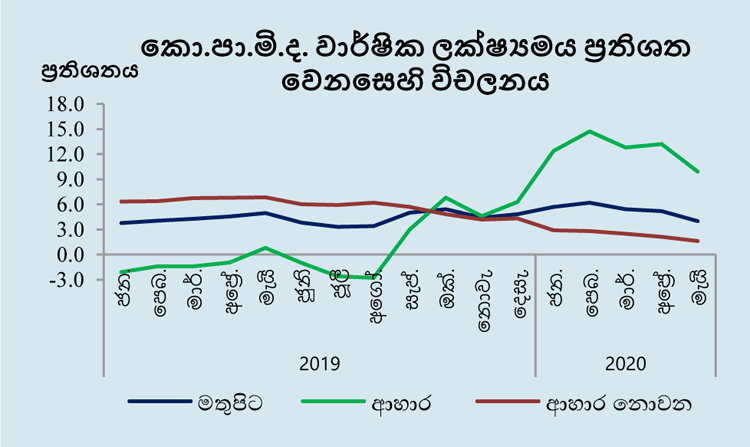 වාර්ෂික පදනම මත මනිනු ලබන කො.පා.මි. දර්ශකයෙහි වෙනස, 2020 අප්රේල් මාසයේ පැවති සියයට 4.8හි සිට 2020 මැයි මාසයේ දී සියයට 4.7 දක්වා සුළු වශයෙන් පහළ ගියේය.