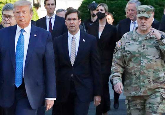 අමෙරිකානු ඒකාබද්ධ මාණ්ඩලික ප්රධානි ජෙනරාල් මාර්ක් මිලේ ප්රකාශ කර ඇත්තේ, ජනාධිපතිවරයා සමඟ එම ගමනට එක්වීම දේශපාලනය සමඟ හමුදා මැදිහත් වීමක් පෙනී යන බවයි.