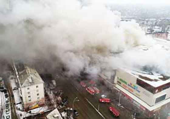 රුසියාවේ සර්බියාවේ කෙමෙරොවෝ නගරයේ සුපිරි විනෝද හා වෙළෙඳ සංකීර්ණයක ඇතිවූ ගින්නකින් කුඩා දරුවන් 41 දෙනකු ඇතුළු 64 දෙනකු මියගොස් තවත් විශාල පිරිසක් තුවාල ලබා තිබේ.