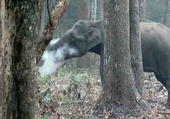 වන අලියෙකුගේ මුවින් දුමක් වැනි දෙයක් පිටවන ආකාරය දැක්වෙන වීඩියෝ දර්ශනයක් දැකීමෙන් කුතූහලයට පත්ව සිටින ලොව පුරා වනජීවී විශේෂඥයෝ ඒ පිළිබඳව ඔවුන්ගේ අවධානය යොමු කරමින් සිටිති.