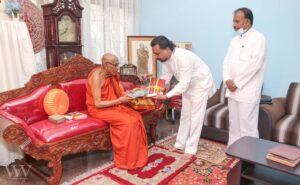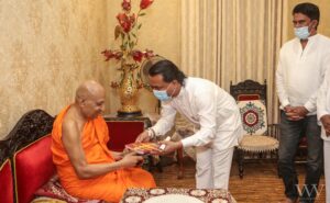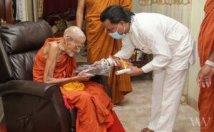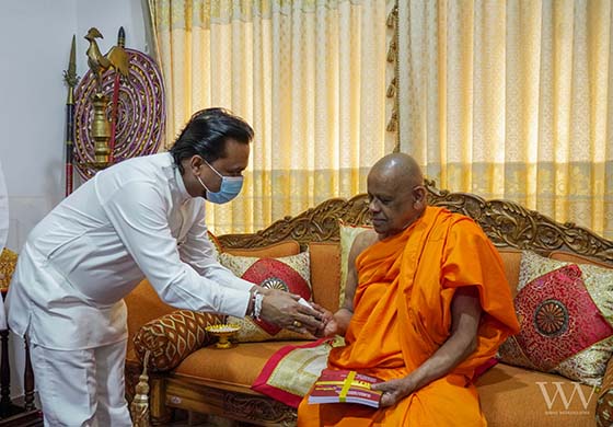 ජාතික නිදහස් පෙරමුණේ නායක කර්මාන්ත හා සැපයුම් කළමනාකරණ අමාත්ය විමල් වීරවංශ මහතා ඇතුළු එම පක්ෂයෙන් මෙවර මැතිවරණයට තරඟවදින අපේක්ෂක පිරිස ”69 ලක්ෂයේ අපේක්ෂාව ඉටු කරන ජනපතිඳුන්ගේ අපේක්ෂාව සපල කරන ‘හරිමඟ’ පශ්චාත් කොවිඞ් – 19 නැගිටීම සඳහා දොළොස් වැදෑරුම් උපායමාර්ගික ප්රවේශය” නම් වූ තම පක්ෂයේ විශේෂ නියෝජිත සමුළුවේ දී එළිදක්වන ලද කෘතිය අද (02) අස්ගිරි මහා විහාරයේදී ශ්යාමෝපාලී මහා නිකායේ අස්ගිරි පාර්ශ්වයේ මහා නායක, අතිපූජ්ය වරකාගොඩ ඥානරතන මහා නාහිමි වෙත පිළිගන්වා ආශිර්වාද ලබා ගත්හ.